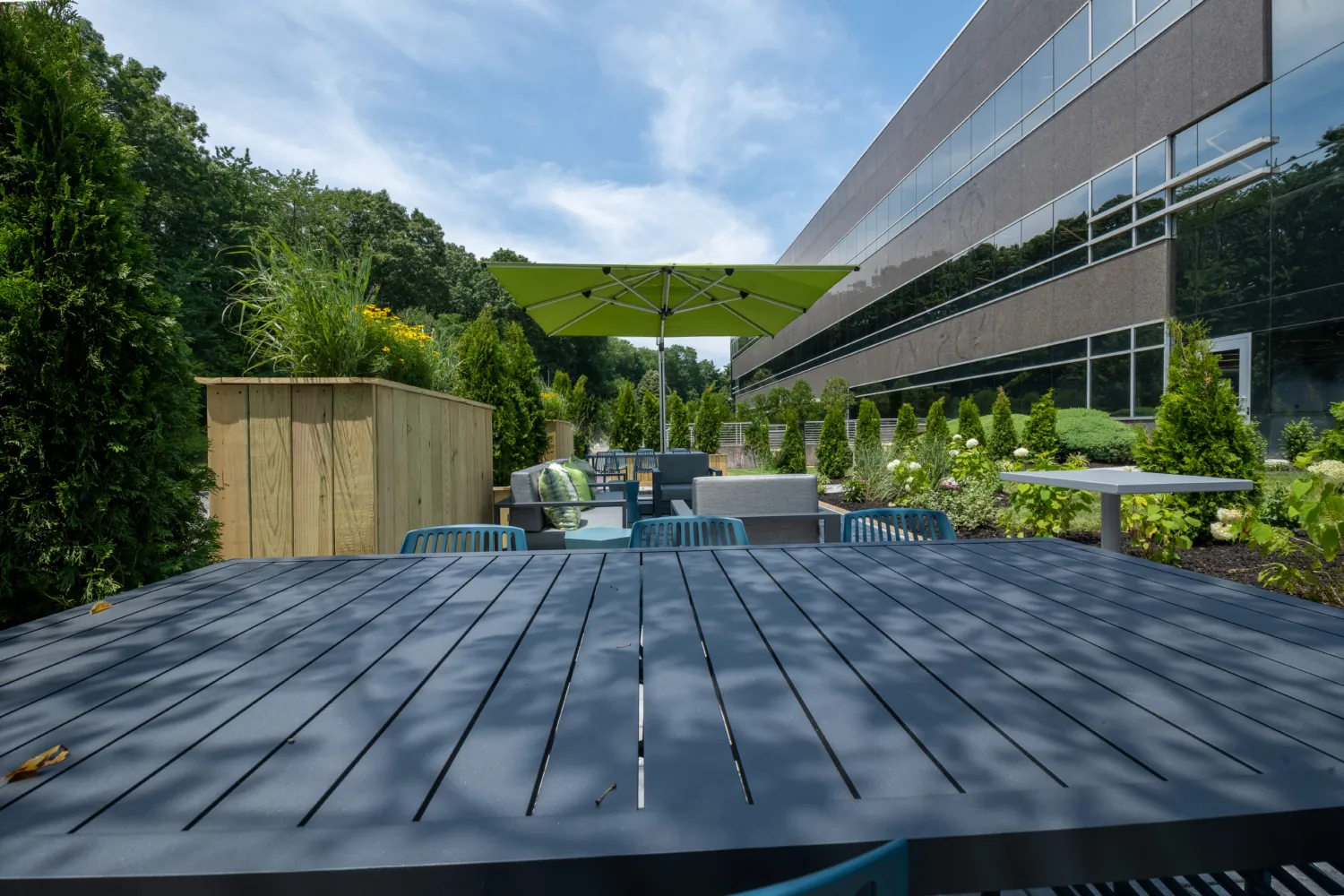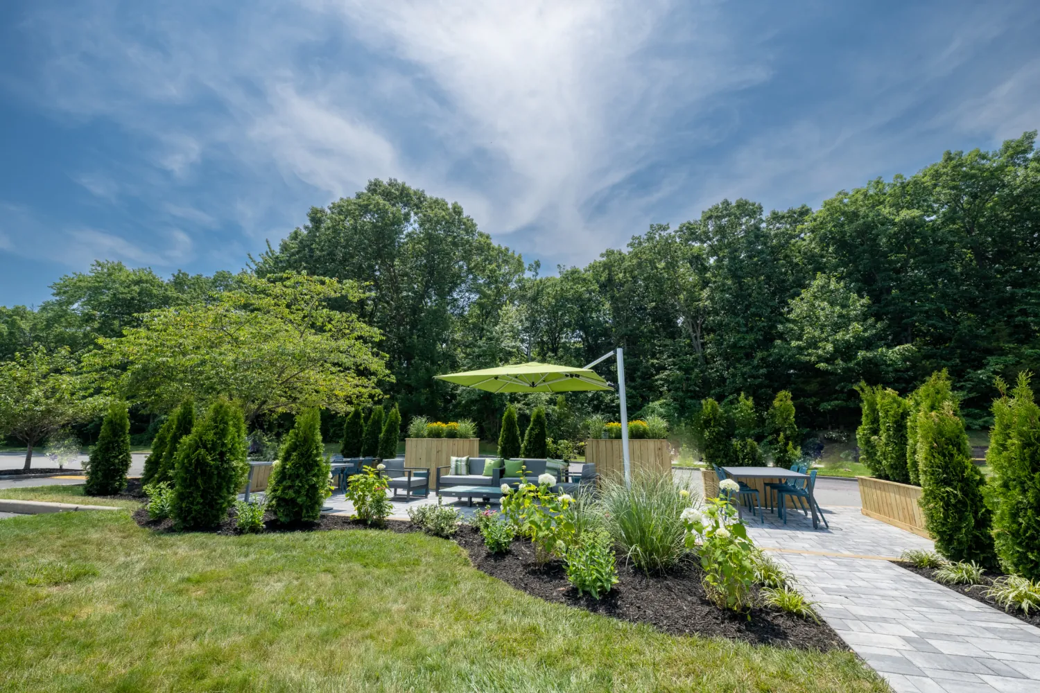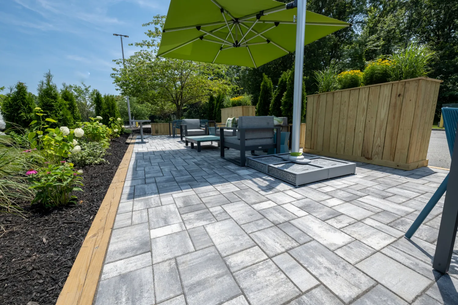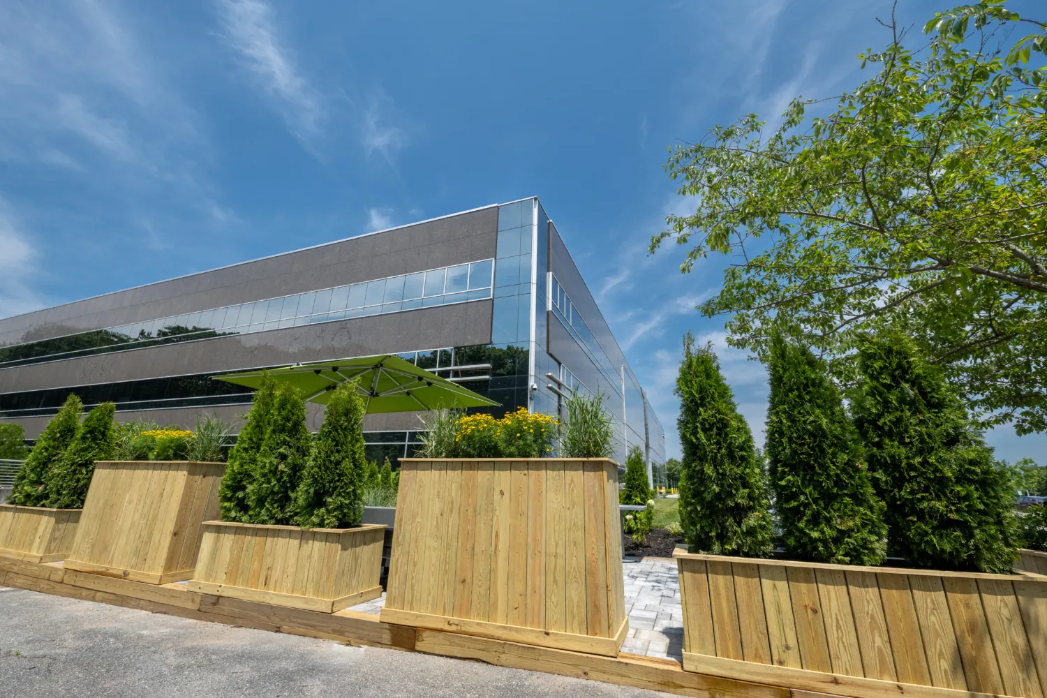 The exterior scope of work consisted of temporarily removing 8 parking spots, creating a level surface, and installing new masonry pavers, locked in by railroad ties. Custom planter boxes and landscape services were provided as well as working with the buildings securities teams to upgrade their needs.