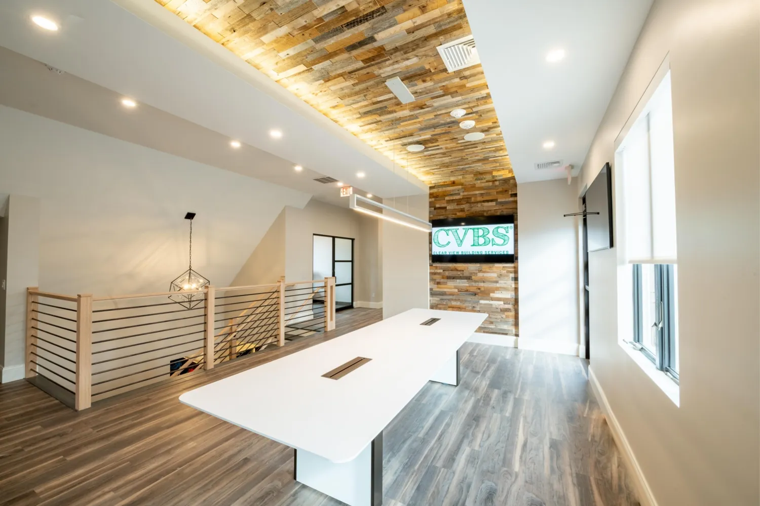 Clear View Building Services completed a renovation of an existing 3,000 square foot wood framed building to accommodate CVBS new office space as well as another tenant. An additional 1,000 square foot of second floor office space was added. Project included all work with Design teams, Engineers, Interior finishes, Exterior finishes.