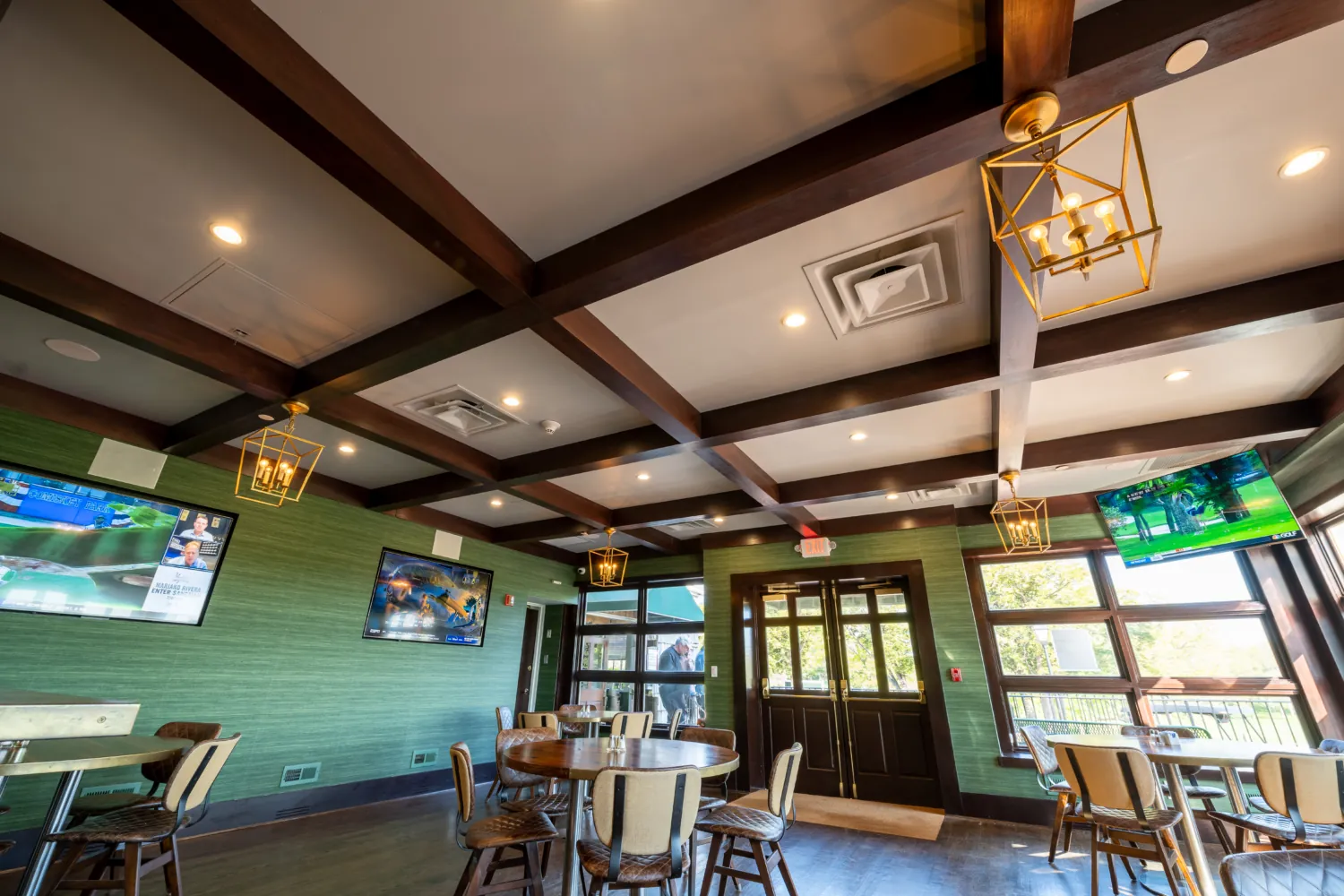 Major renovation of the existing 19th Hole Bar for the 2019 PGA Championship. The project required the demolition, shoring and new structural support of a 20’ wide fire place built by Robert Moses and his teams in 1936. The exterior portion of the chimney was historic and needed to be left undisturbed. Along with electrical, mechanical, carpentry, painting, flooring and custom millwork the bar was rolled out for use by some of the world best golfers and their families during the Championship.