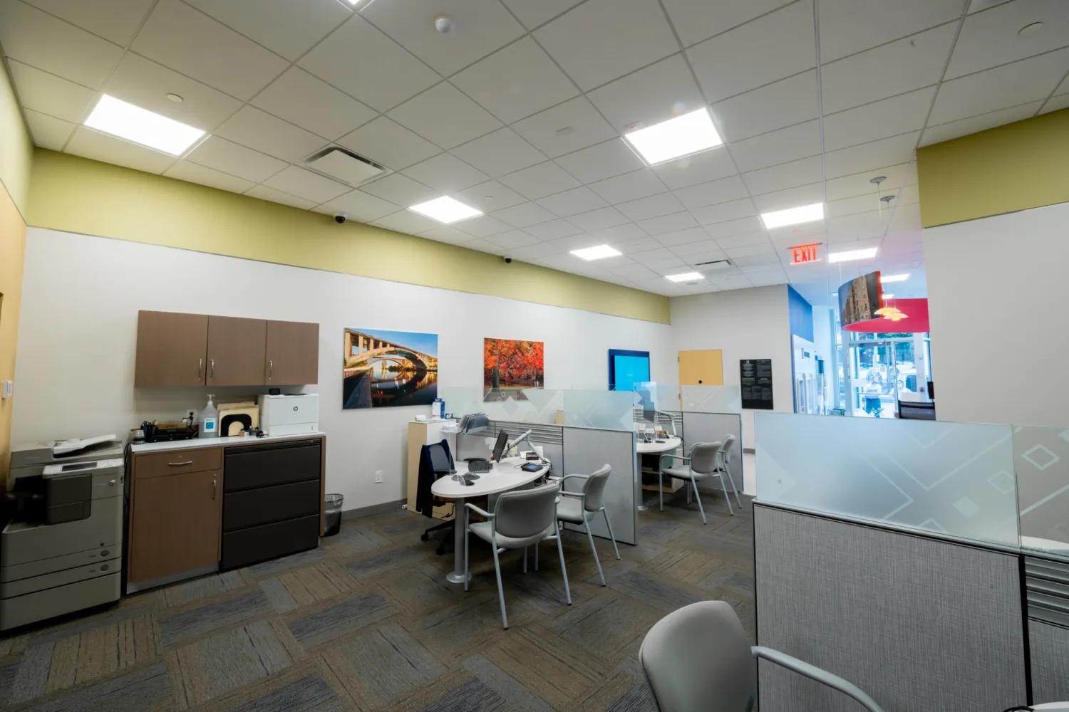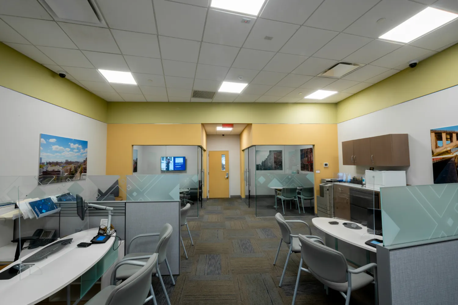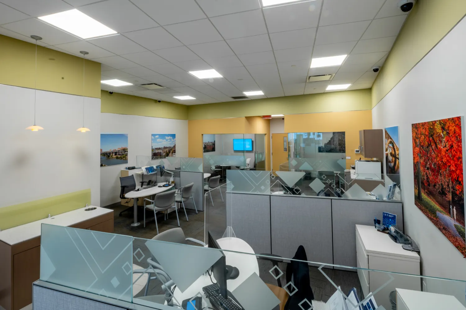 $600K new build-out of a 2,000 square foot white box to a new financial center. Interior Services included demo, carpentry, electrical, plumbing, HVAC, painting, flooring. Exterior services included new storefront, waterproofing, exterior metal façade panels, ADA concrete repairs for exterior walk up ATM and a new sidewalk basement entrance that meets all ADA guidelines